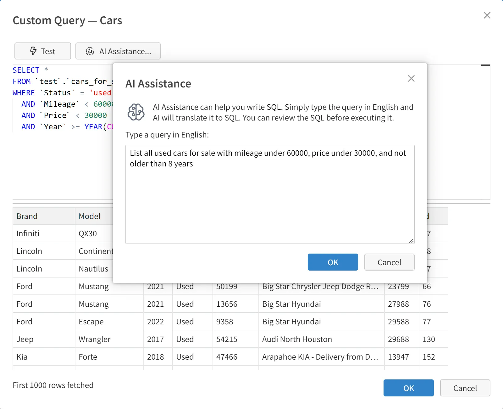 Query builder with AI assistance